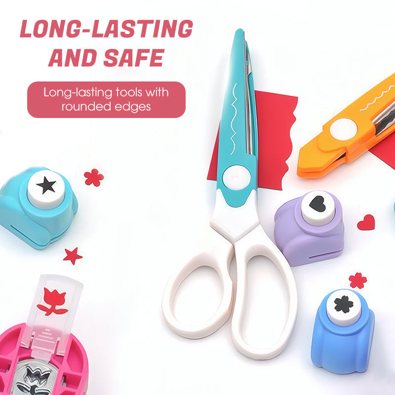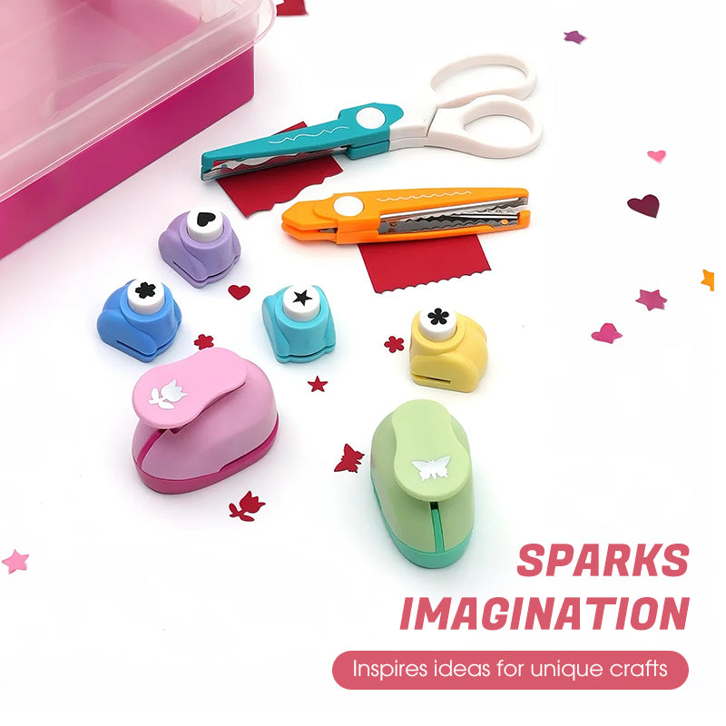 DIVERTIDAS HERRAMIENTAS CREATIVAS -< Este set incluye una variedad de perforadoras de papel con formas divertidas como corazones, estrellas y flores, además de tijeras con borde de festón. Funcionan en papel, cartulina e incluso tela fina. Crea bonitos diseños para tarjetas de felicitación, diarios, papel de regalo u otros proyectos de bricolaje. Con tantas formas en un juego, puedes mezclarlas y combinarlas para que cada proyecto destaque y explorar un sinfín de posibilidades creativas.