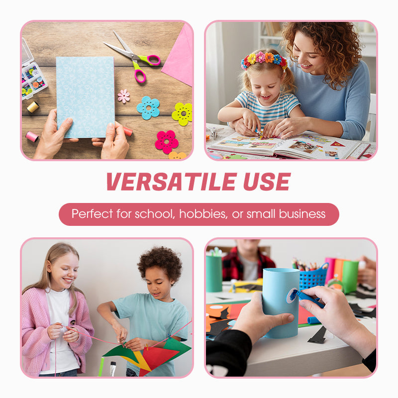 LUMINOSOS COLORES Y NECIO ALMACENAMIENTO -< Las herramientas vienen en alegres colores como rosa, azul, amarillo y verde, divertidos para los niños y elegantes para adolescentes y adultos por igual. Todo cabe perfectamente en una caja de almacenamiento compacta, que mantiene los punzones y las tijeras organizados y fáciles de transportar. Llévatelo a reuniones de manualidades, talleres o a cualquier parte sin preocuparte de perder piezas.
