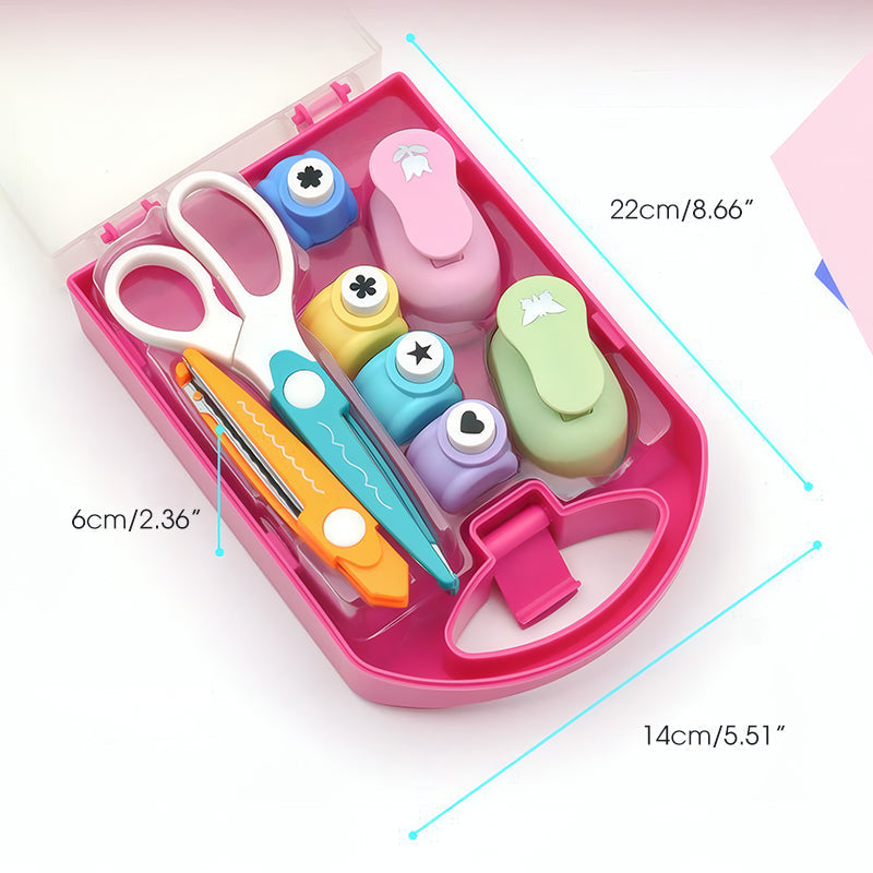 DURABLES Y SEGUROS -< Fabricados con materiales resistentes, los punzones presionan suavemente y las tijeras se mantienen afiladas. La seguridad fue una prioridad en el diseño, con bordes redondeados en las tijeras para ayudar a prevenir accidentes, haciéndolas adecuadas para niños bajo supervisión. Este juego está hecho para durar, para que puedas disfrutar de muchas sesiones de manualidades sin preocuparte por el desgaste o las roturas.