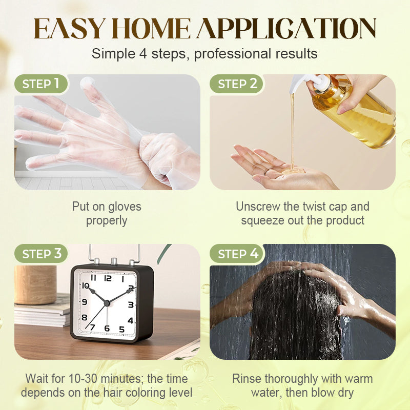 COLORACIÓN SENCILLA EN CASA - Transforma tu experiencia de teñido con un proceso de aplicación increíblemente sencillo. No requiere mezcla; simplemente aplica directamente. Con solo cuatro pasos fáciles, logra resultados de aspecto profesional desde la comodidad de tu hogar, ahorrando tiempo y dinero mientras tomas el control de tu rutina capilar.