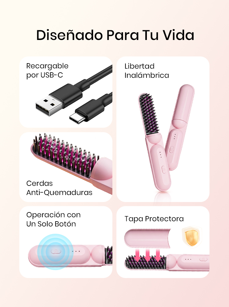💇♀️ 50% DE DESCUENTO! ✨ Peine Alisador Profesional - Tecnología de Calor Uniforme para Todo Tipo de Cabello con Protección Anti-Quemaduras 🌸✨