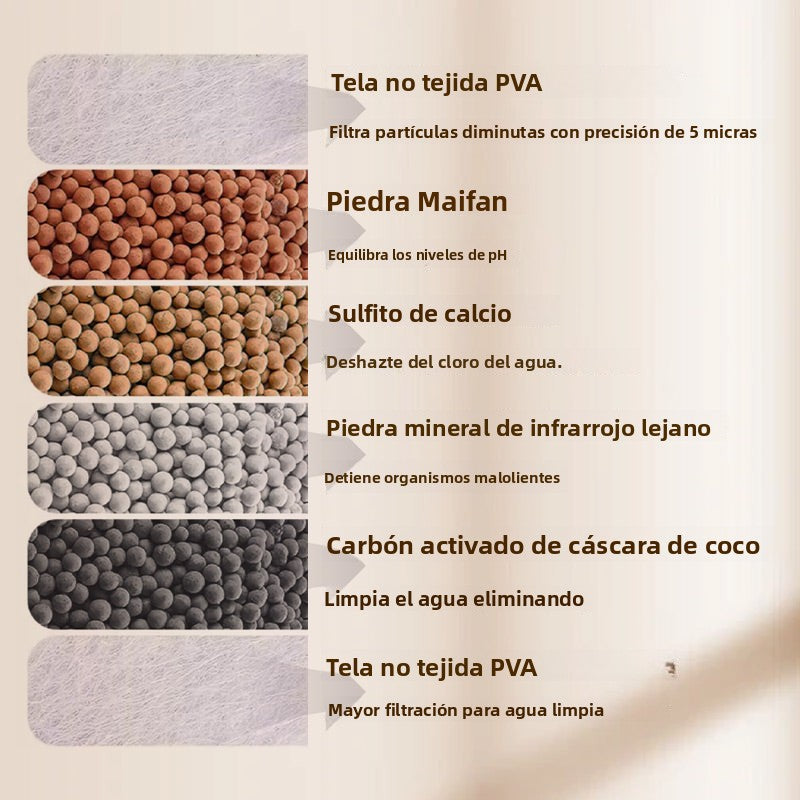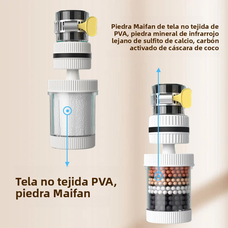 - Filtrazione avanzata multistrato (modello migliorato):Il filtro per rubinetto migliorato è dotato di tessuto non tessuto in PVA che filtra particelle minuscole con una precisione di 5 micron, garantendo l'eliminazione anche dei contaminanti più piccoli. La pietra Maifan bilancia i livelli di pH, mentre il solfito di calcio elimina efficacemente il cloro. La pietra minerale a infrarossi lontani previene la proliferazione di organismi odorosi e il carbone attivo di gusci di cocco rimuove colore, odore e sostanze organiche per fornire l'acqua più pura possibile.